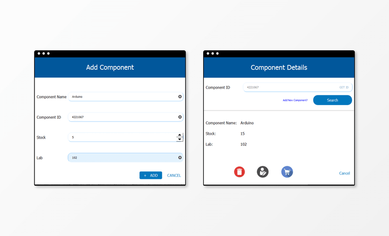 ICLog is a sophisticated desktop application consisting of a student panel and admin panel, meticulously crafted using PyQT5 to simplify the management of lab components. Using the student panel, students can request lab components from available stock, while the admin panel allows in-charges to approve or reject requests, view transaction history, and track pending transactions. All relevant user details, component information, and transaction records are securely managed by a MySQL database.